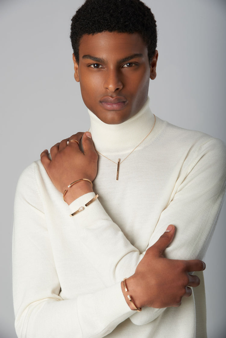 Small Bracelet in 18k Rose Gold with White and Champagne Diamonds.