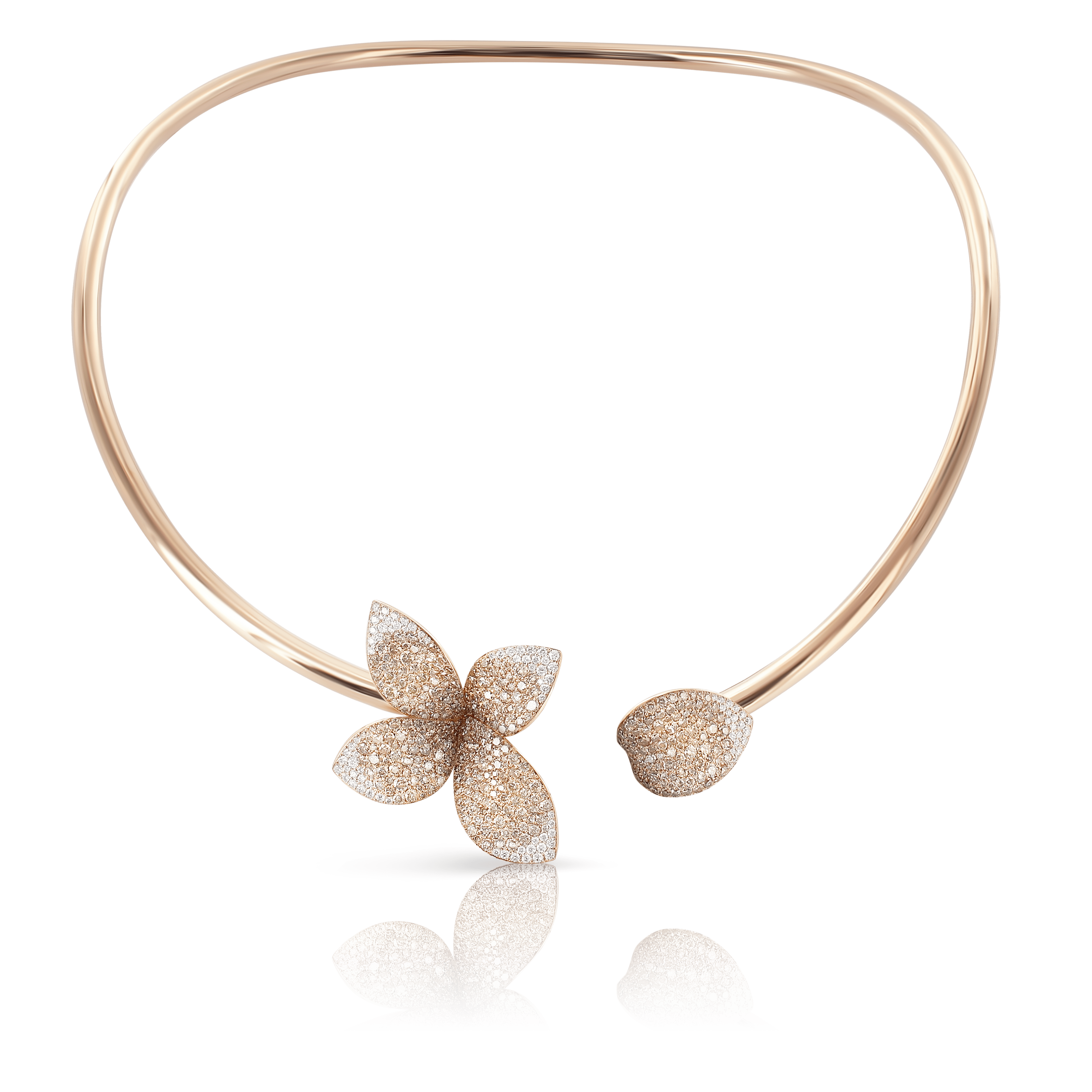 Single Flower Collier in 18k Rose Gold with White and Champagne Diamonds.