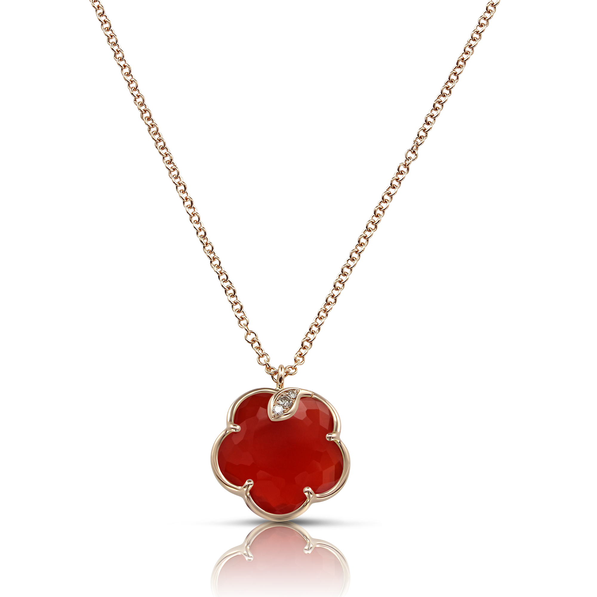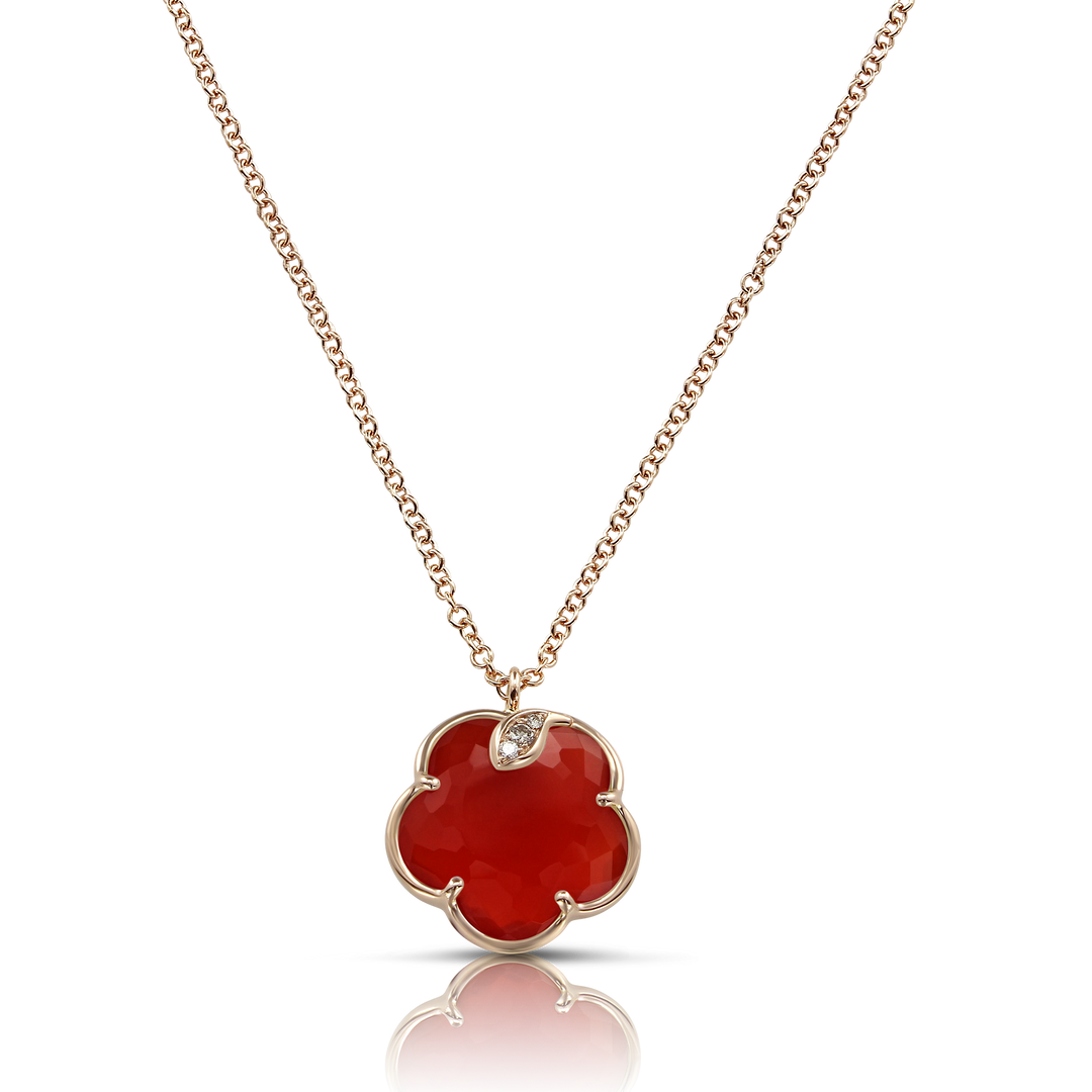 Necklace in 18k Rose Gold with Carnelian and Diamonds.