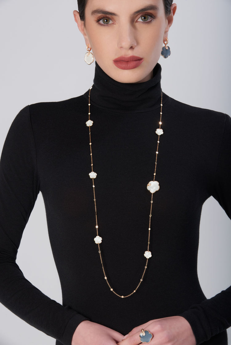 Sautoir in 18k Rose Gold with Pearl of The Moon Gem and Diamonds.