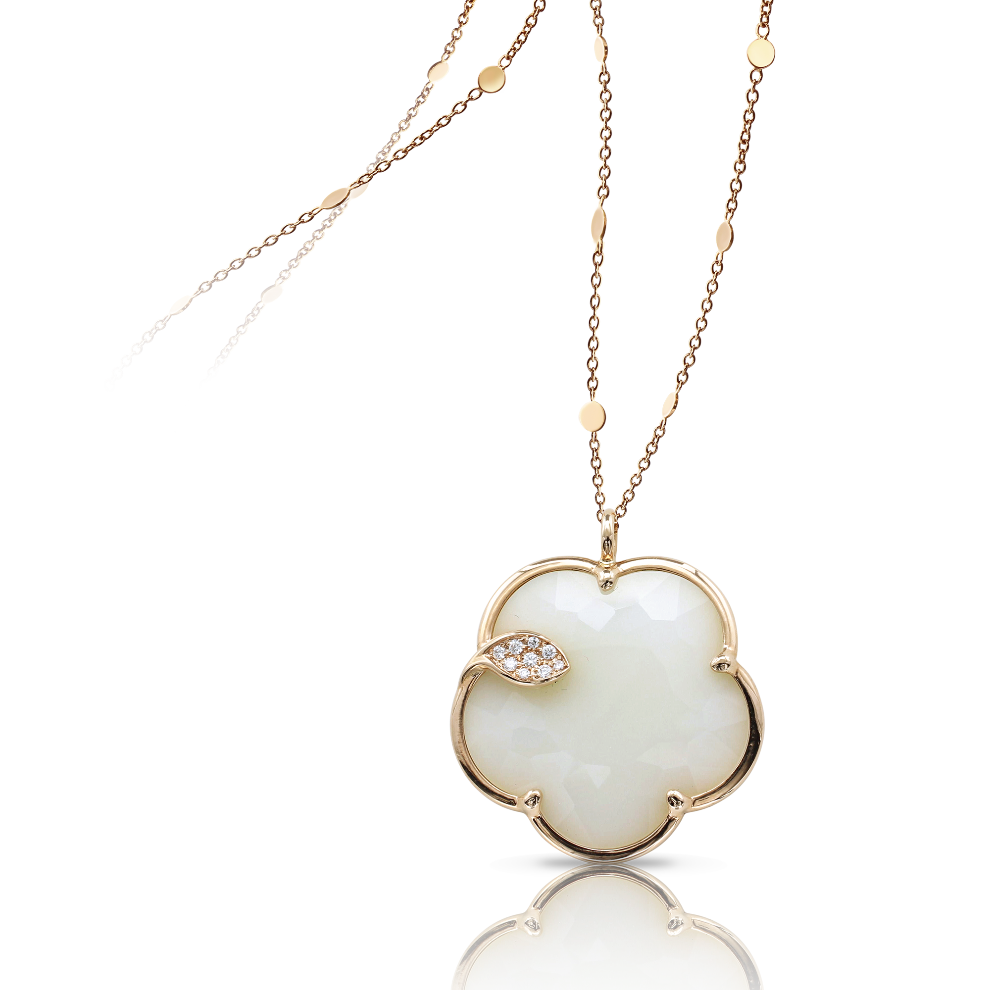 Halskette aus 18 Karat Roségold mit Achat, Perlmutt und Diamanten.