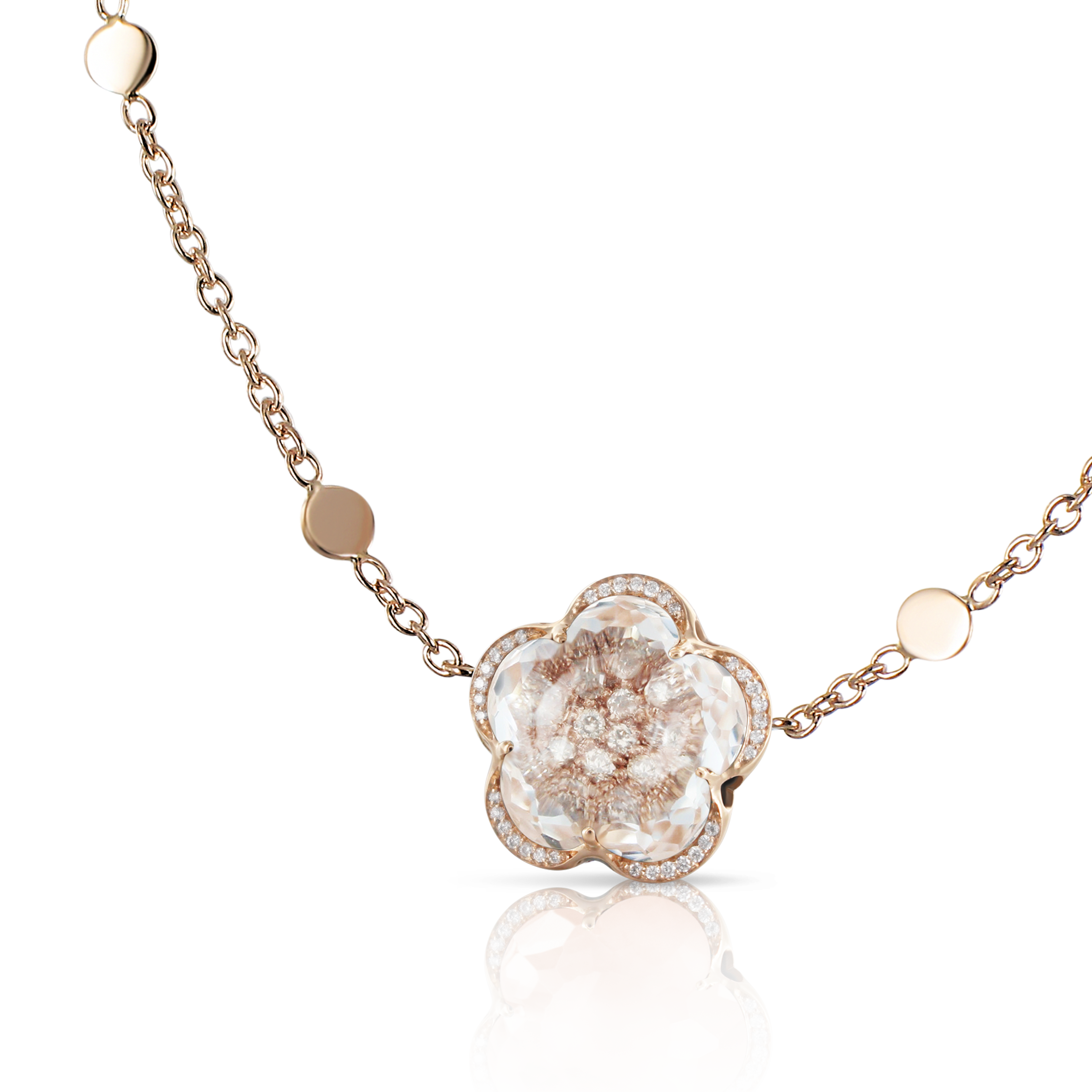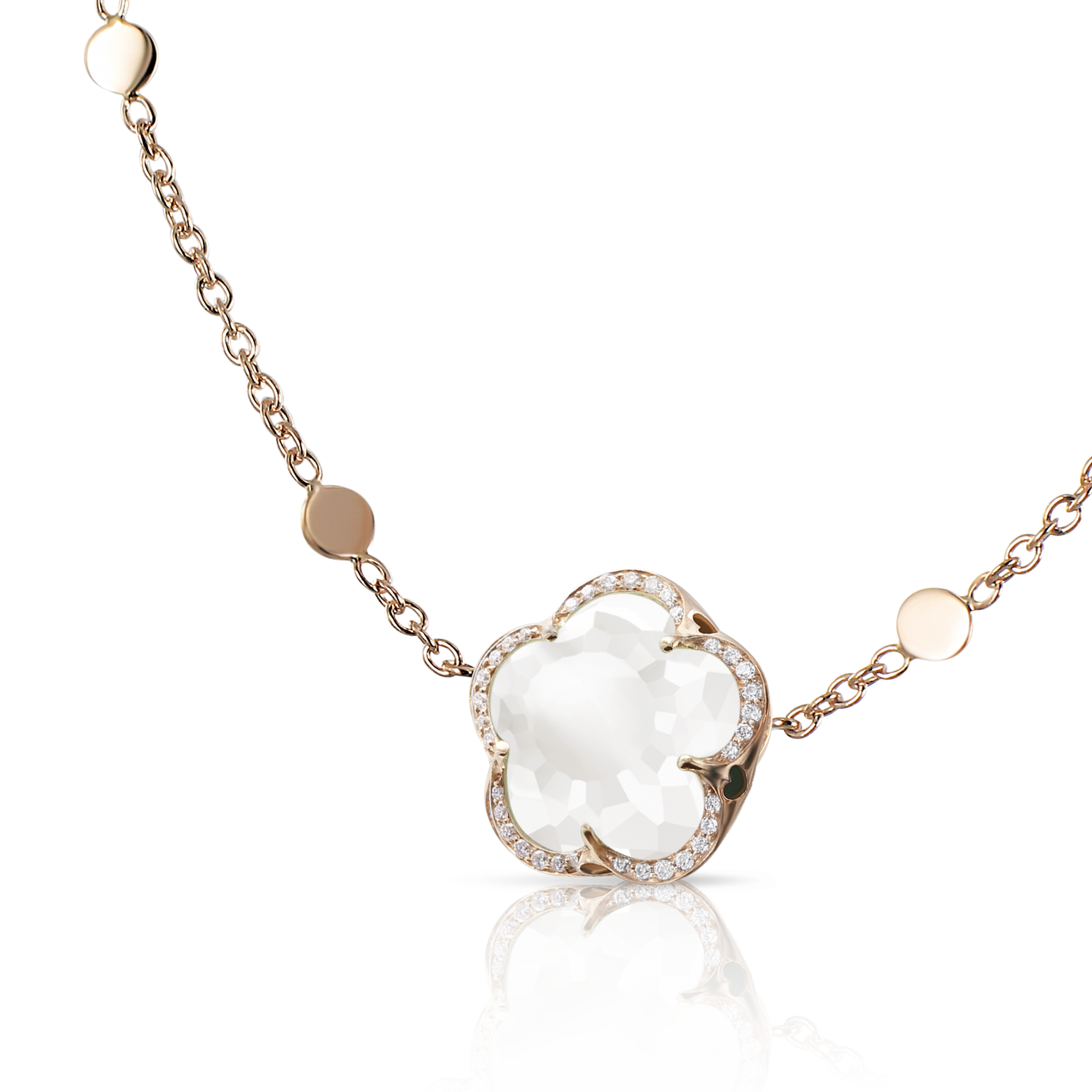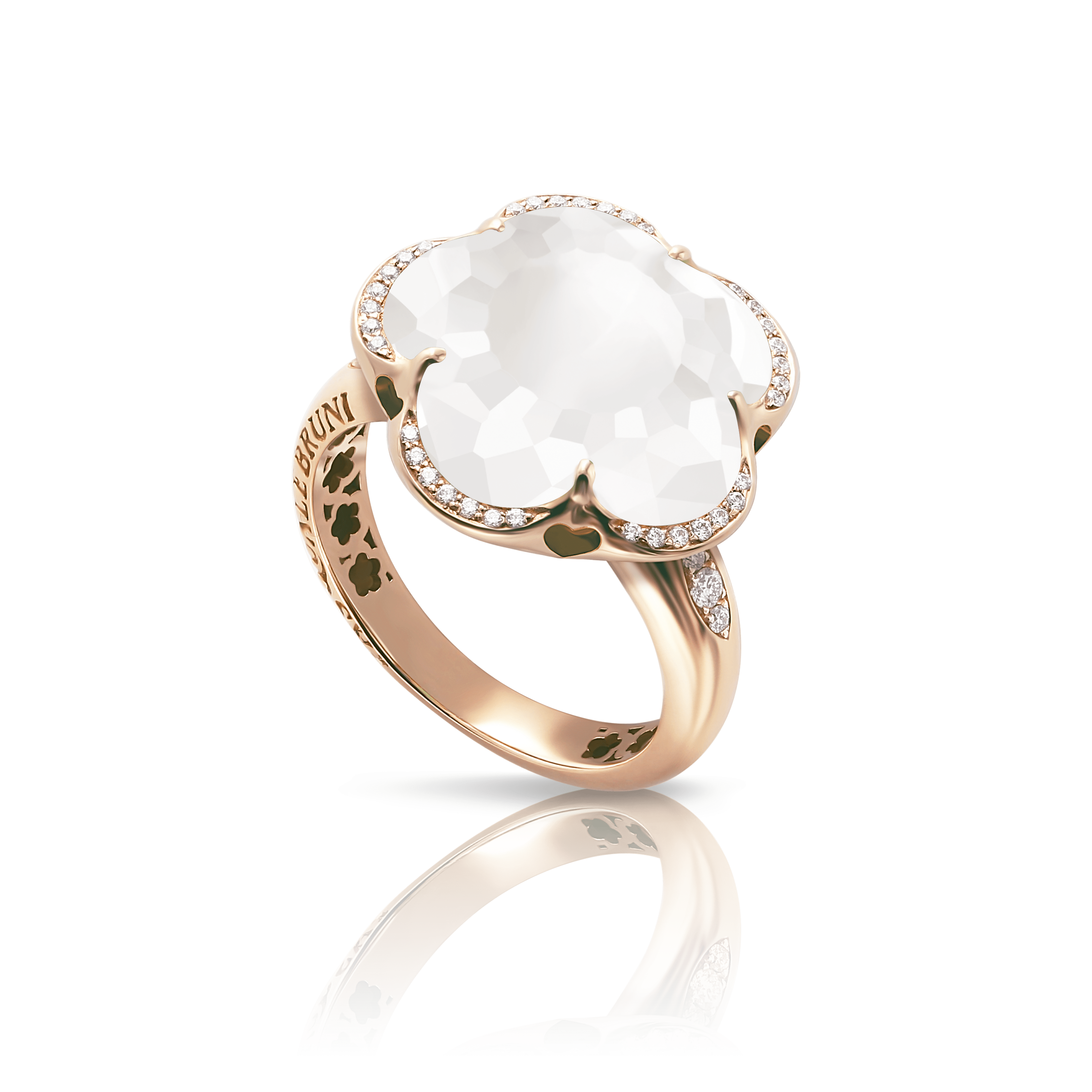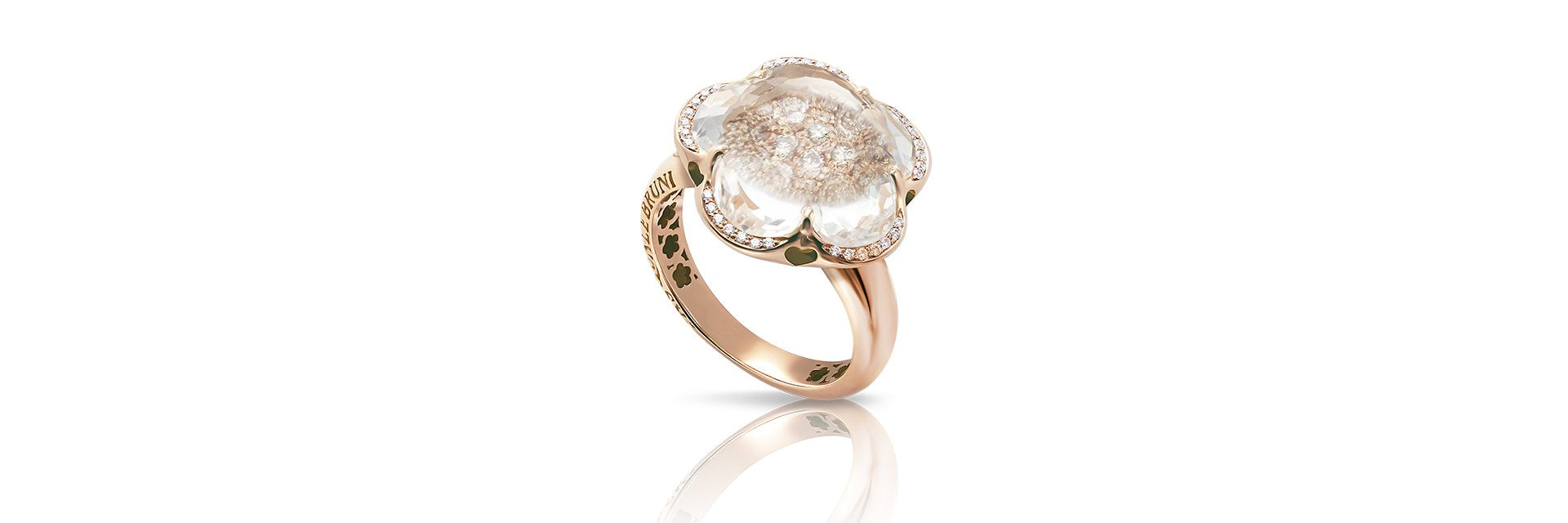 The five-petals flower represents the icon of the Maison and evokes a woman with an elegant, harmonious and sophisticated lifestyle. The Bon Ton collection, whose symbol is this very flower, has adapted, alongside women, to the changing times and society, without sacrificing the simplicity and the innate grace of its emblem. The stones’ patented ‘Bon Ton cut’ features soft faceted petals culminating in a cabochon pistil at the heart of the jewel. A collection that has successfully reinvented itself, while retaining its identity over the years.