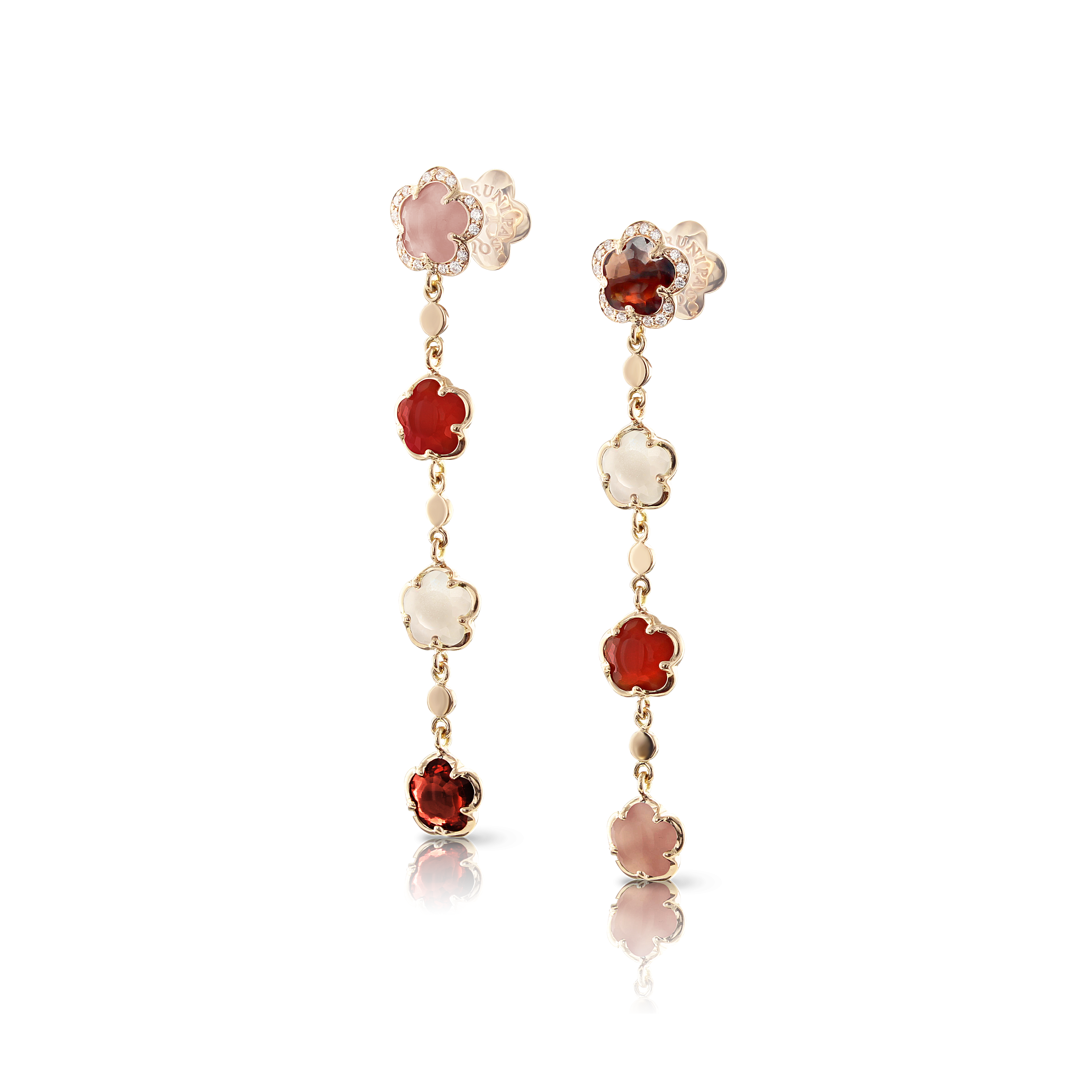 Pendant Earrings in 18k Rose Gold with Moonstone, Pink Chalcedony, Carnelian, Red Garnet and White Diamonds.