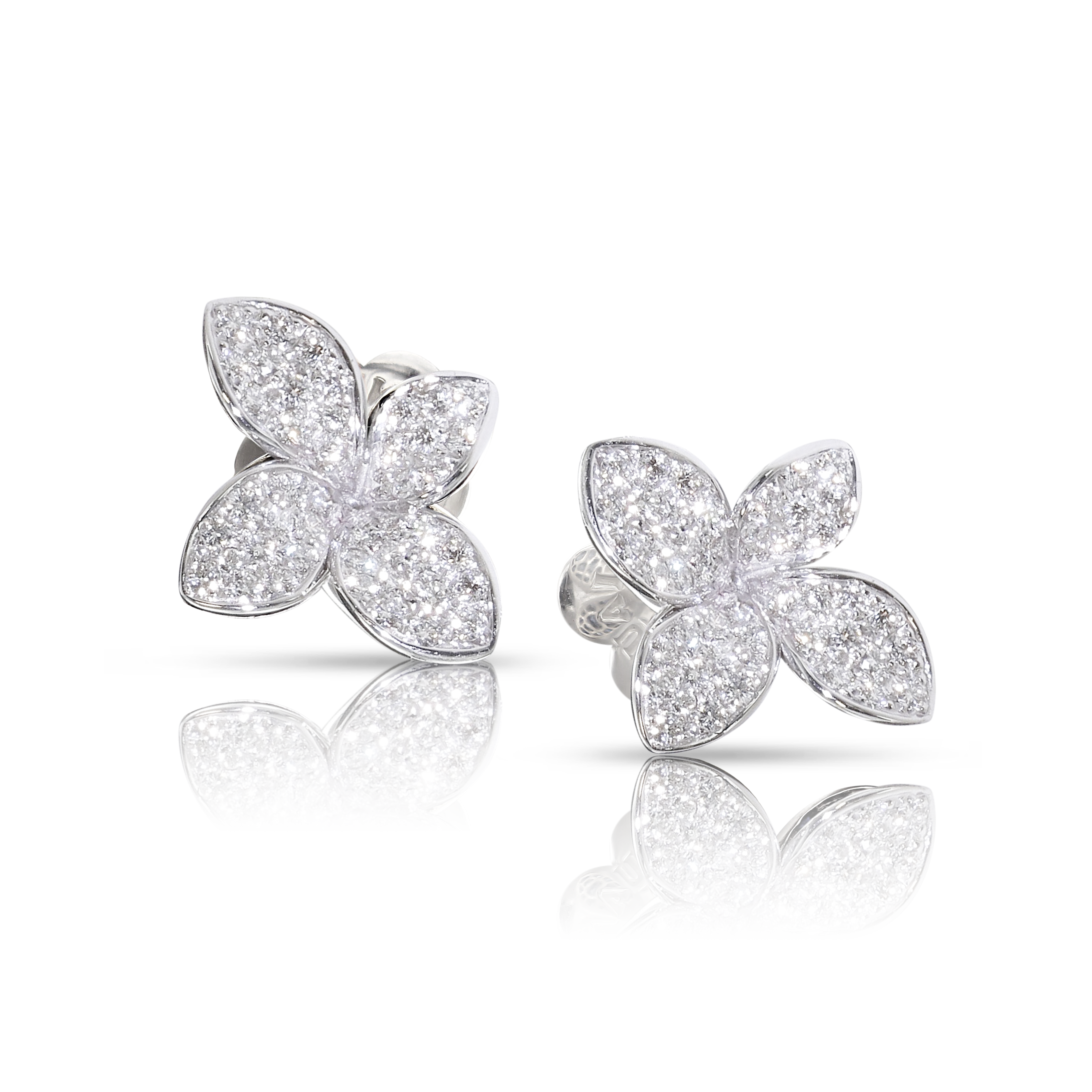 Earrings in 18k Rose Gold with Diamonds, Small Flower.