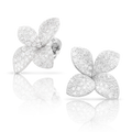 Earrings in 18k White Gold with Diamonds, Small Flower.