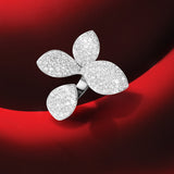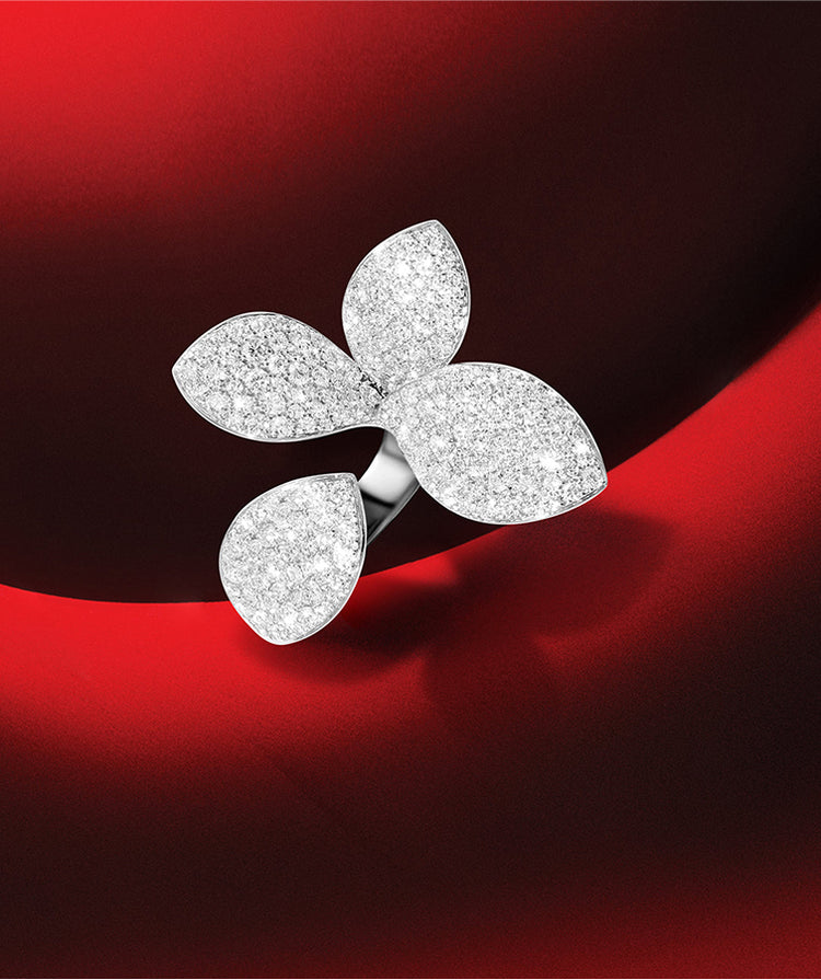 Three Leaves Ring in 18k Rose Gold with White and Champagne Diamonds.