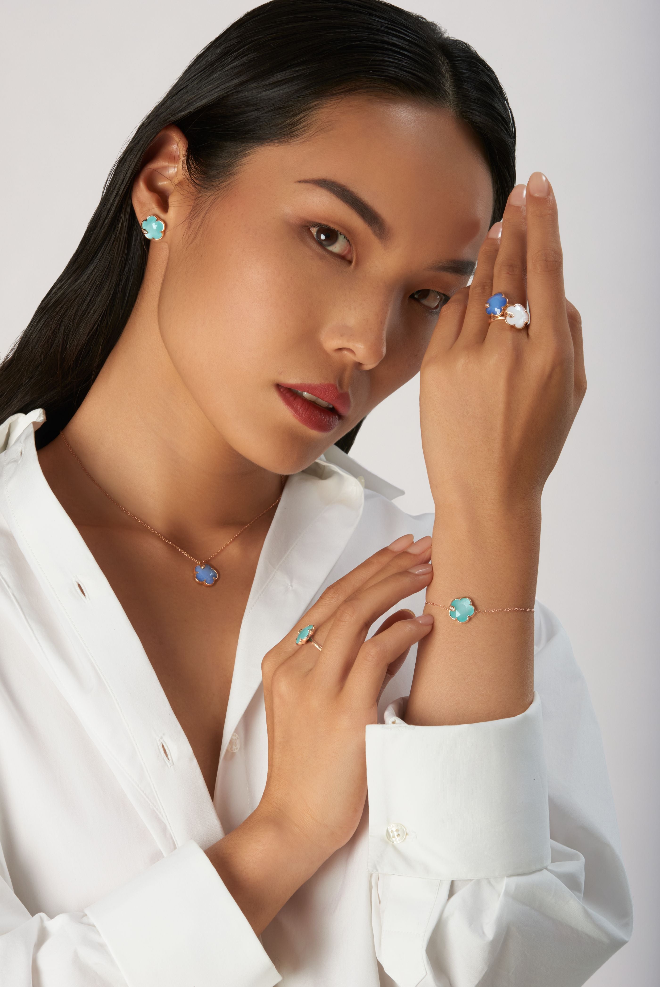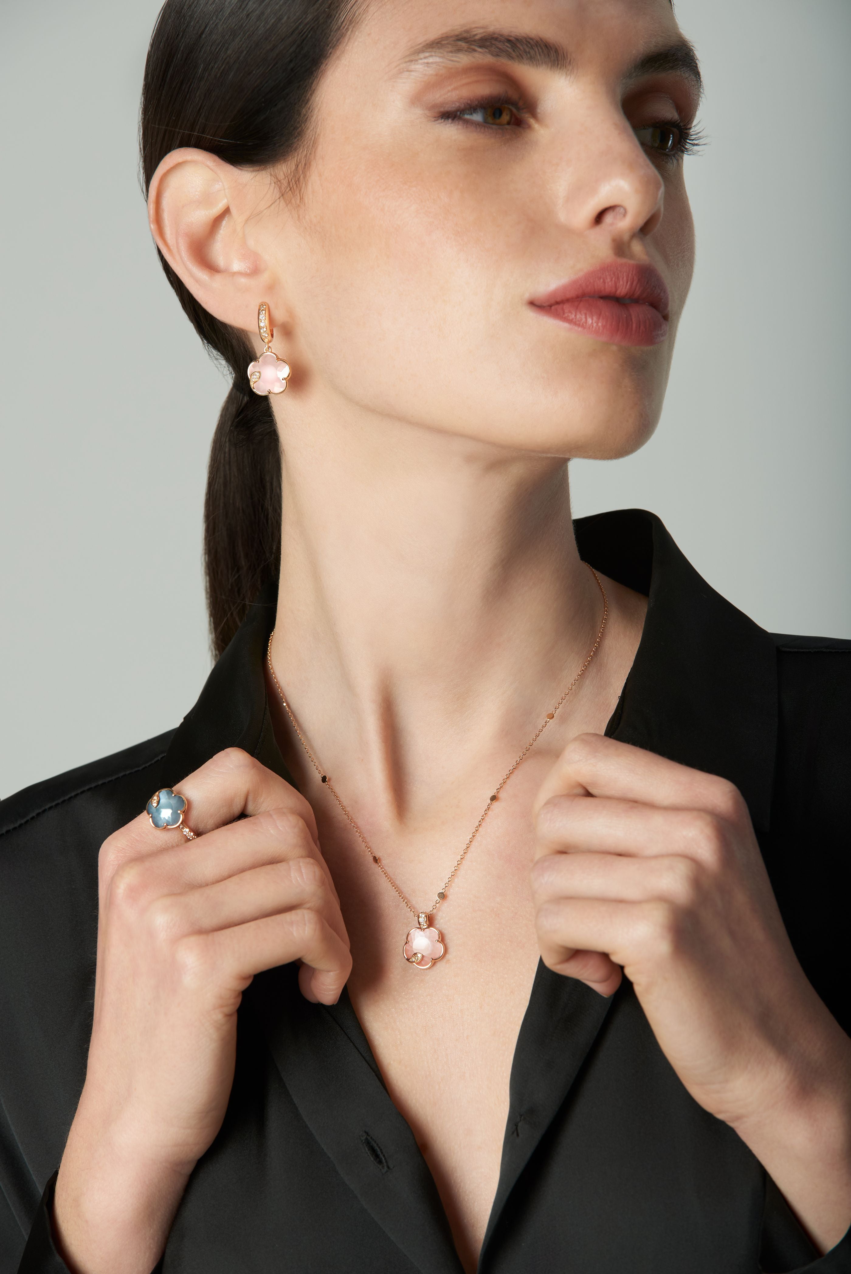 Necklace in 18k Rose Gold with Sea Moon gem and Diamonds.