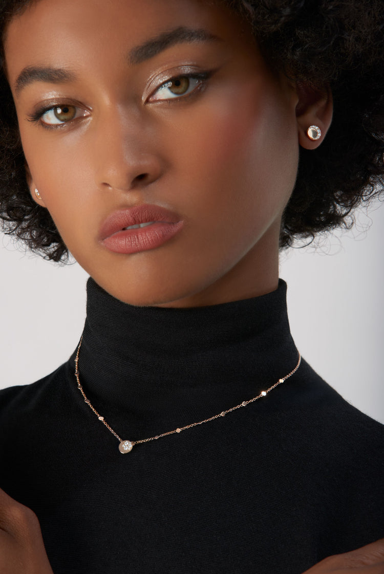 The miracle of light in nature caught meditating in an inviting trail of shimmers in the sea gave birth to this masterpiece made of rose gold, enchantment and white diamonds.