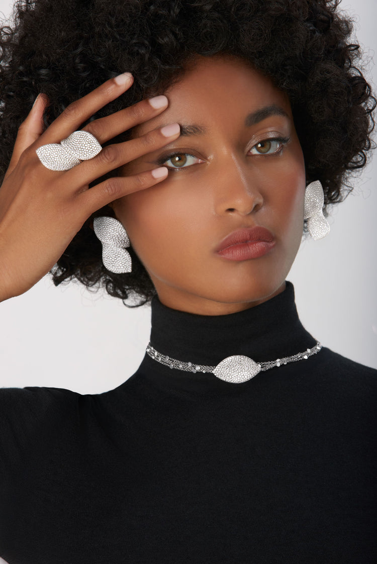 Bague en or blanc 18 carats avec diamants blancs.