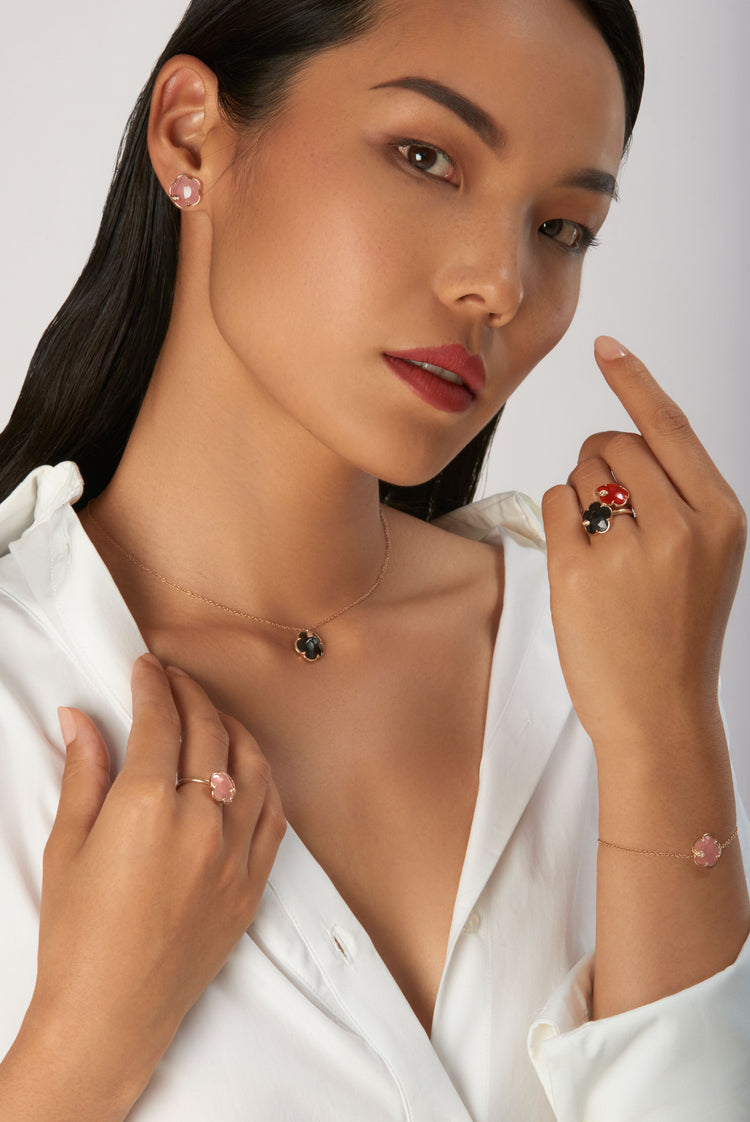 Bracelet en or rose 18 carats avec calcédoine rose et diamants.