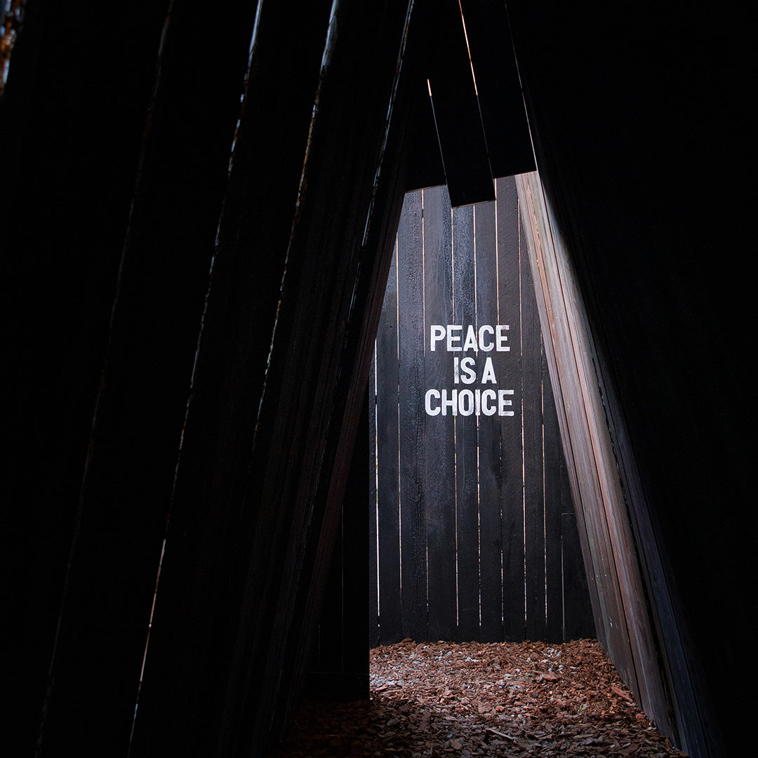 Along the path, seven glowing inscriptions of the word “PEACE” in different languages shine through the darkness, while the voices of great historical figures echo, reminding us that peace is not merely a utopia, but a daily commitment.