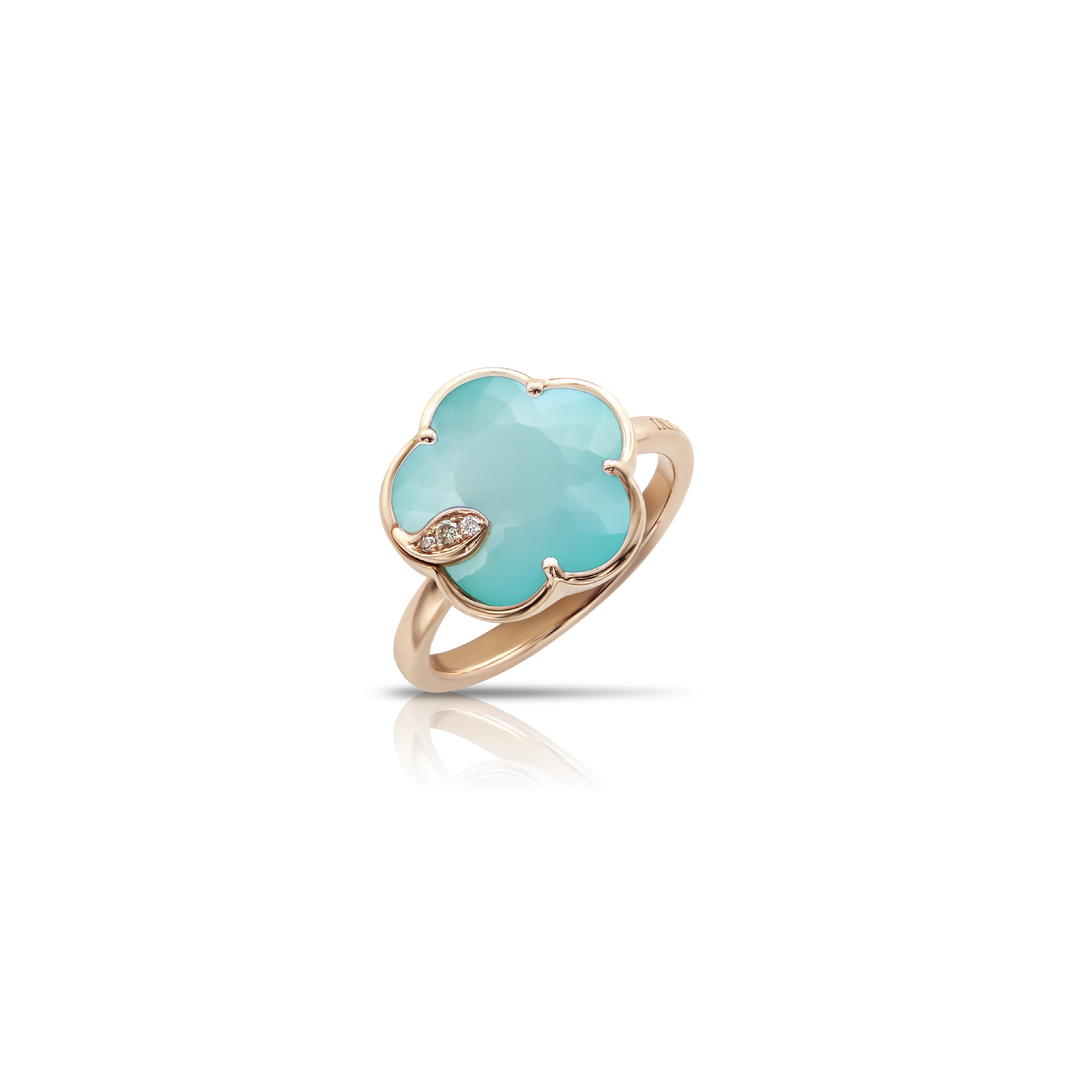 Bague en or rose 18 carats avec gemme Sea Moon et diamants.