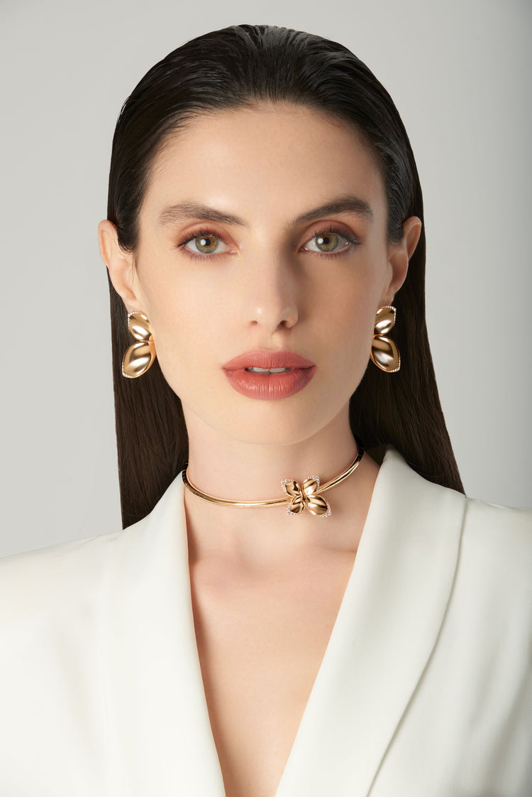 Choker in Oro Rosa 18 Carati con Diamanti Bianchi, Fiore singolo.