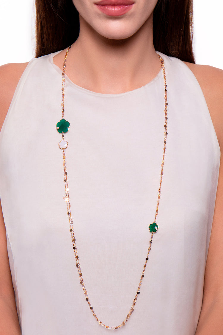 La forza dell'agata verde incontra la luna vellutata dell'agata bianca. In questo abbraccio tra il cielo e la terra sentiamo che le donne possono fare tutto.