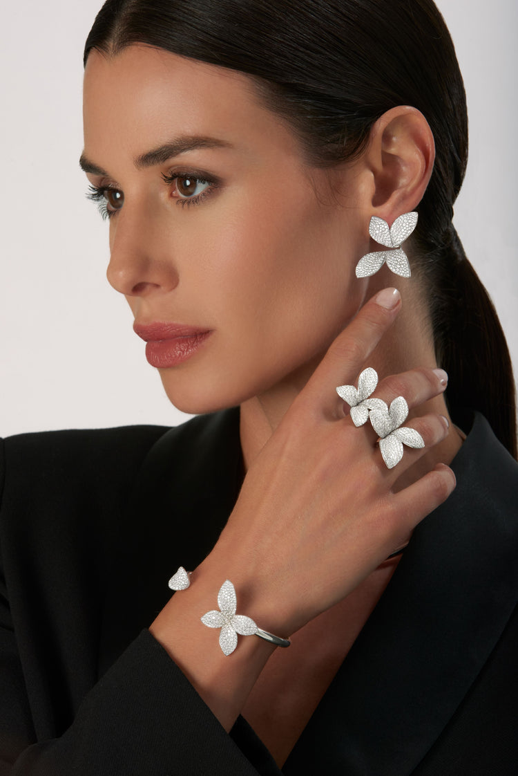 Orecchini in Oro Bianco 18 Carati con Diamanti, Fiore XL.