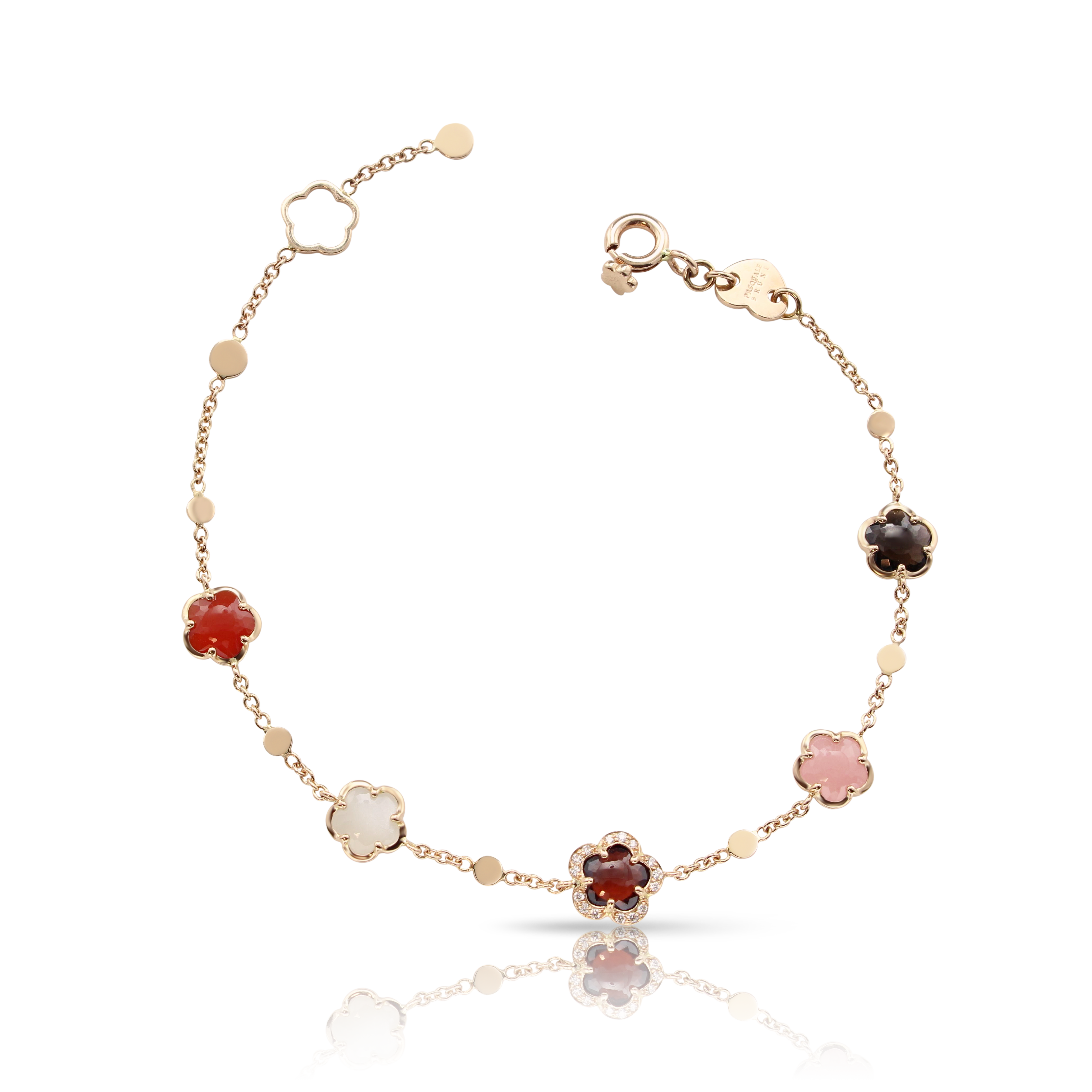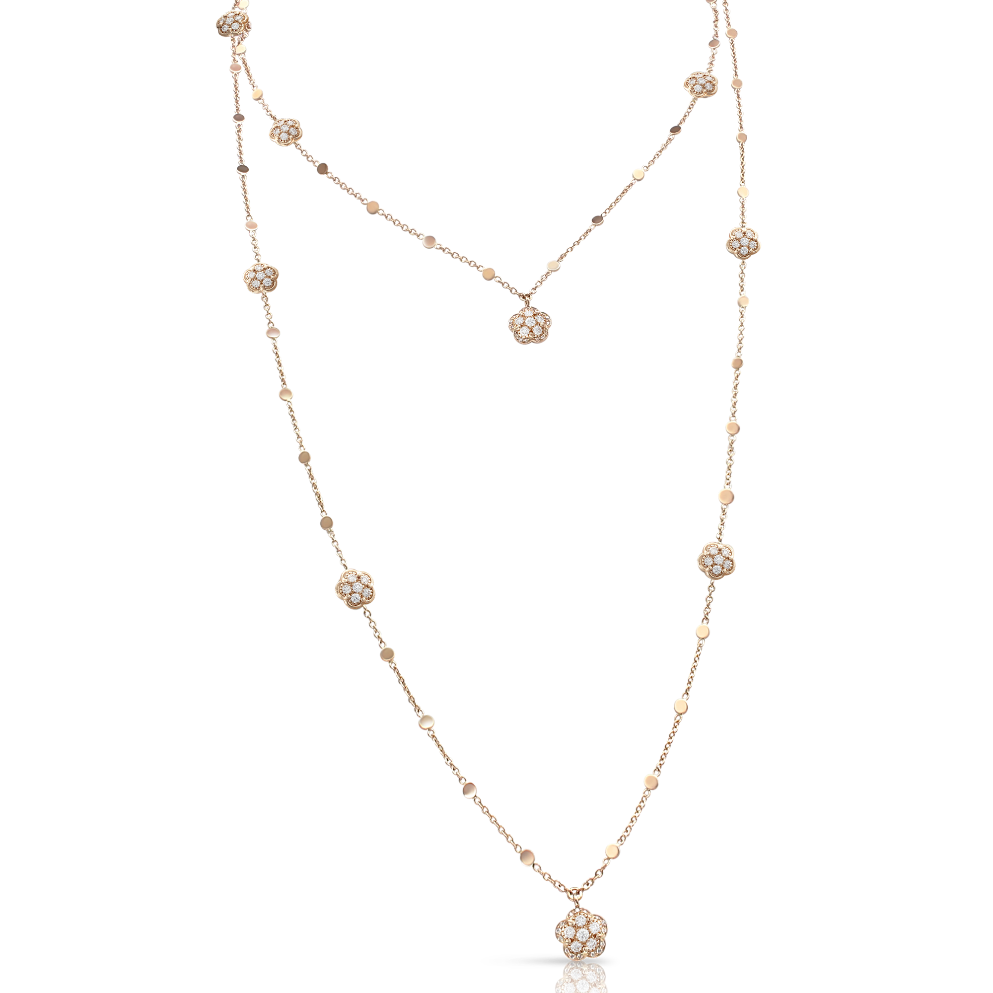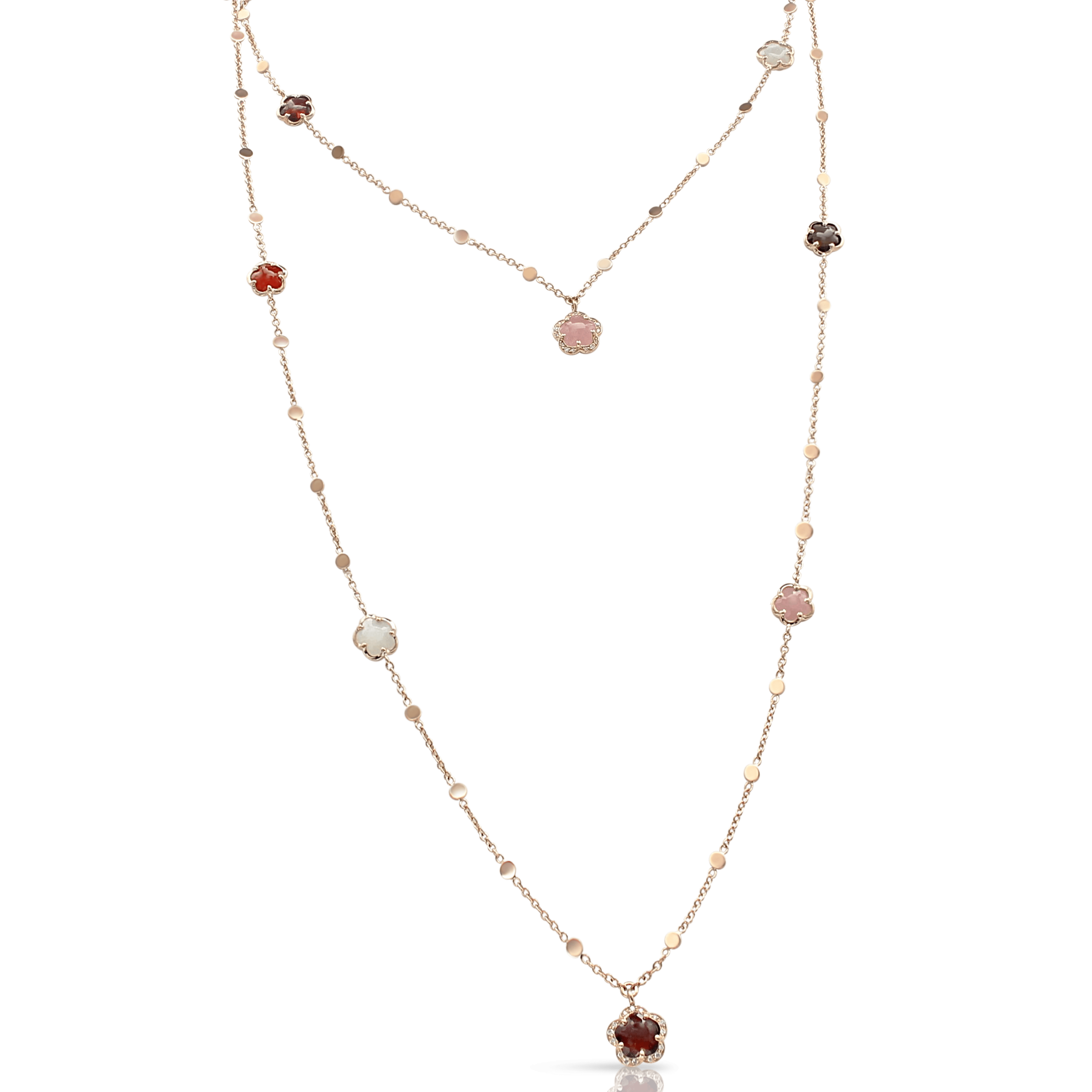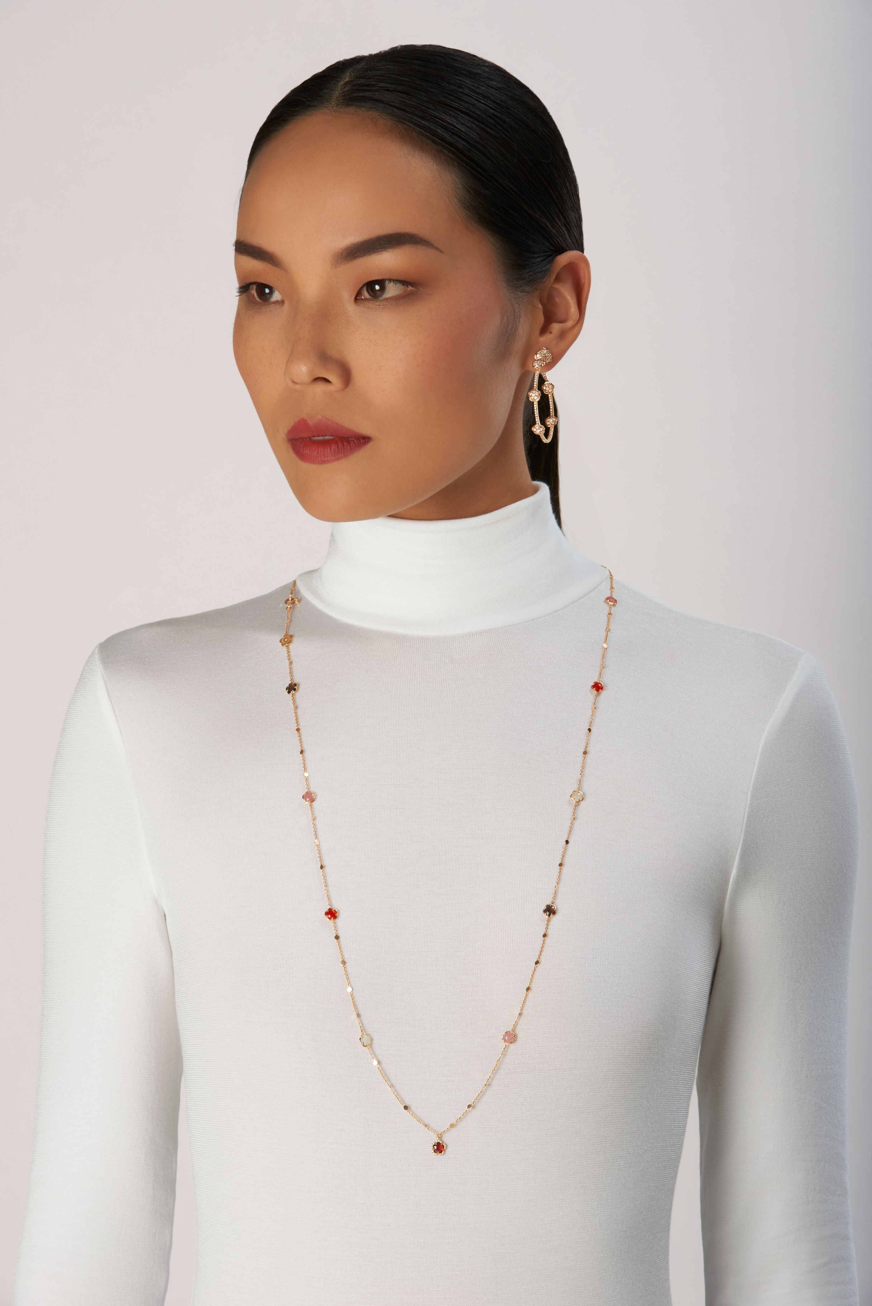 Sautoir in Oro Rosa 18 Carati con Calcedonio Rosa, Granato Rosso, Pietra di Luna, Quarzo Fumé, Corniola e Diamanti.