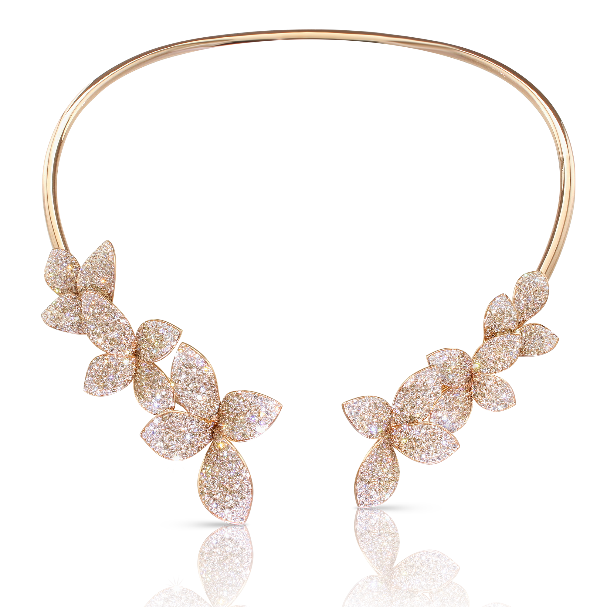 Giardini Segreti Multi Flower Collier in 18k Rose Gold with White and Champagne Diamonds.