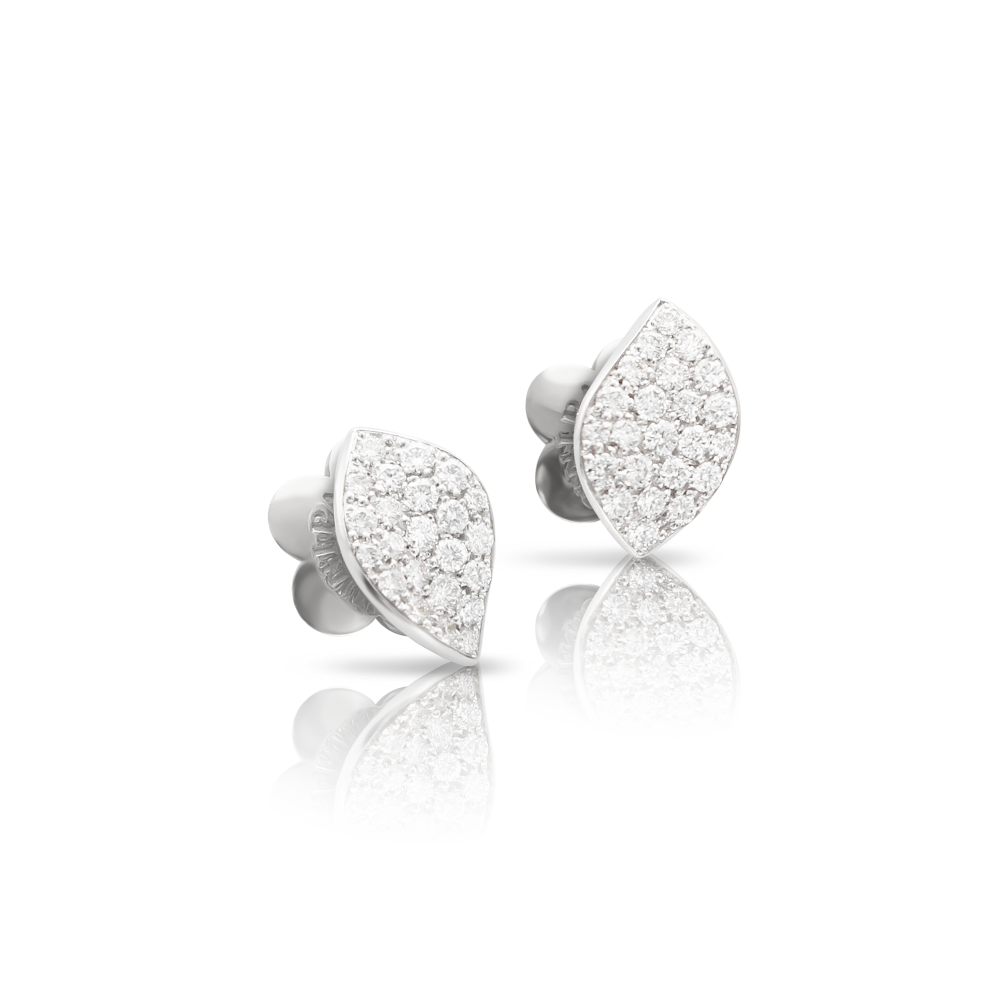 Orecchini in Oro Bianco 18 Carati con Diamanti, Foglia Singola.