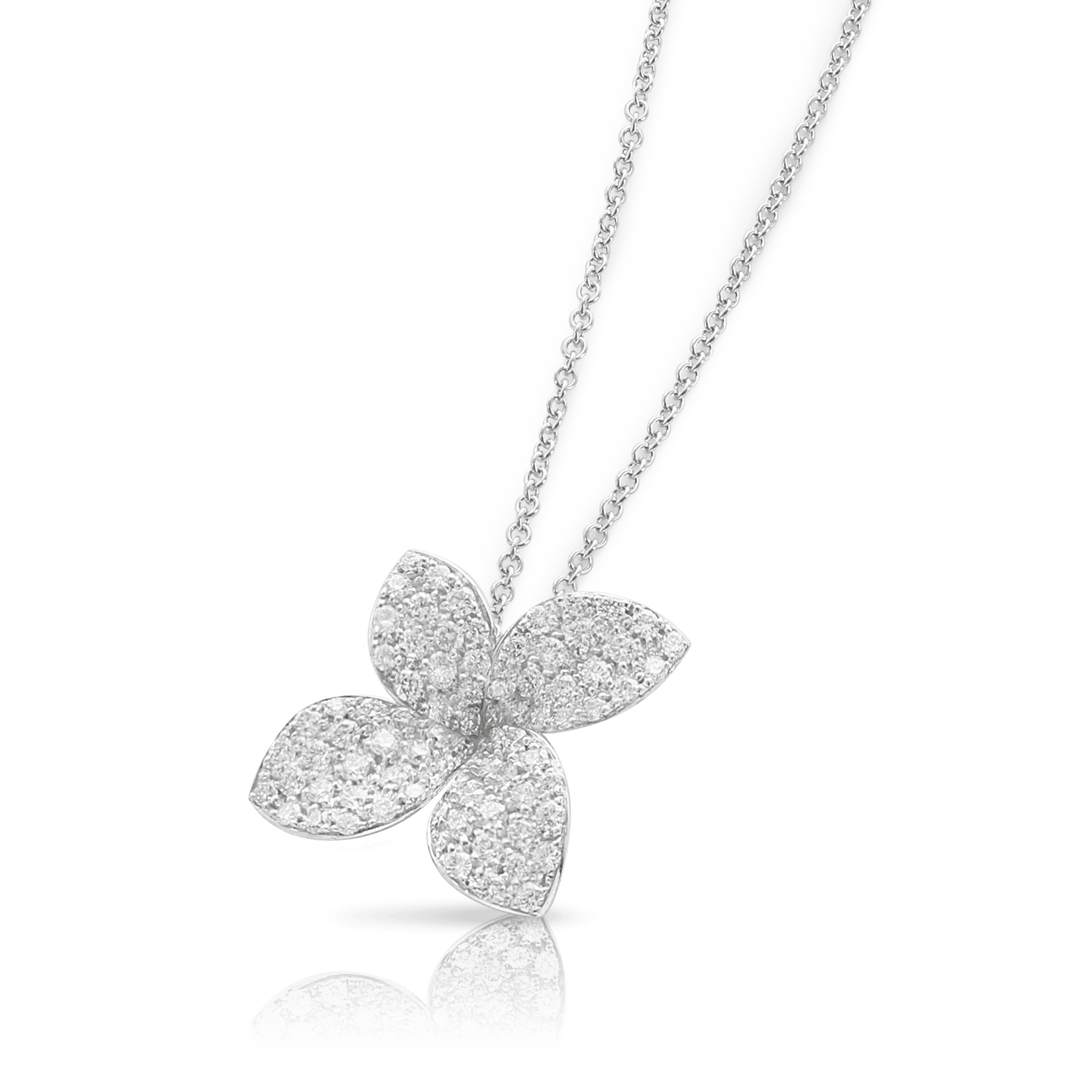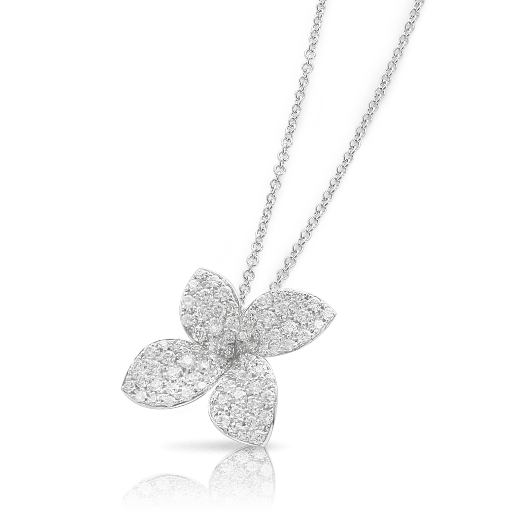 Collana in Oro Bianco 18 Carati con Diamanti, Fiore Medio.