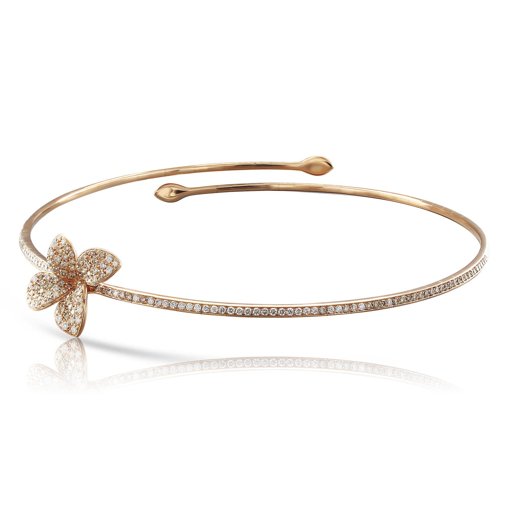La flessibilità e la vestibilità in questa collezione sono ottenute grazie ad una molla in titanio inserita all'interno della struttura. Si chiama forma della memoria, nel senso che l'anima interiore del gioiello non perde mai la sua forma.