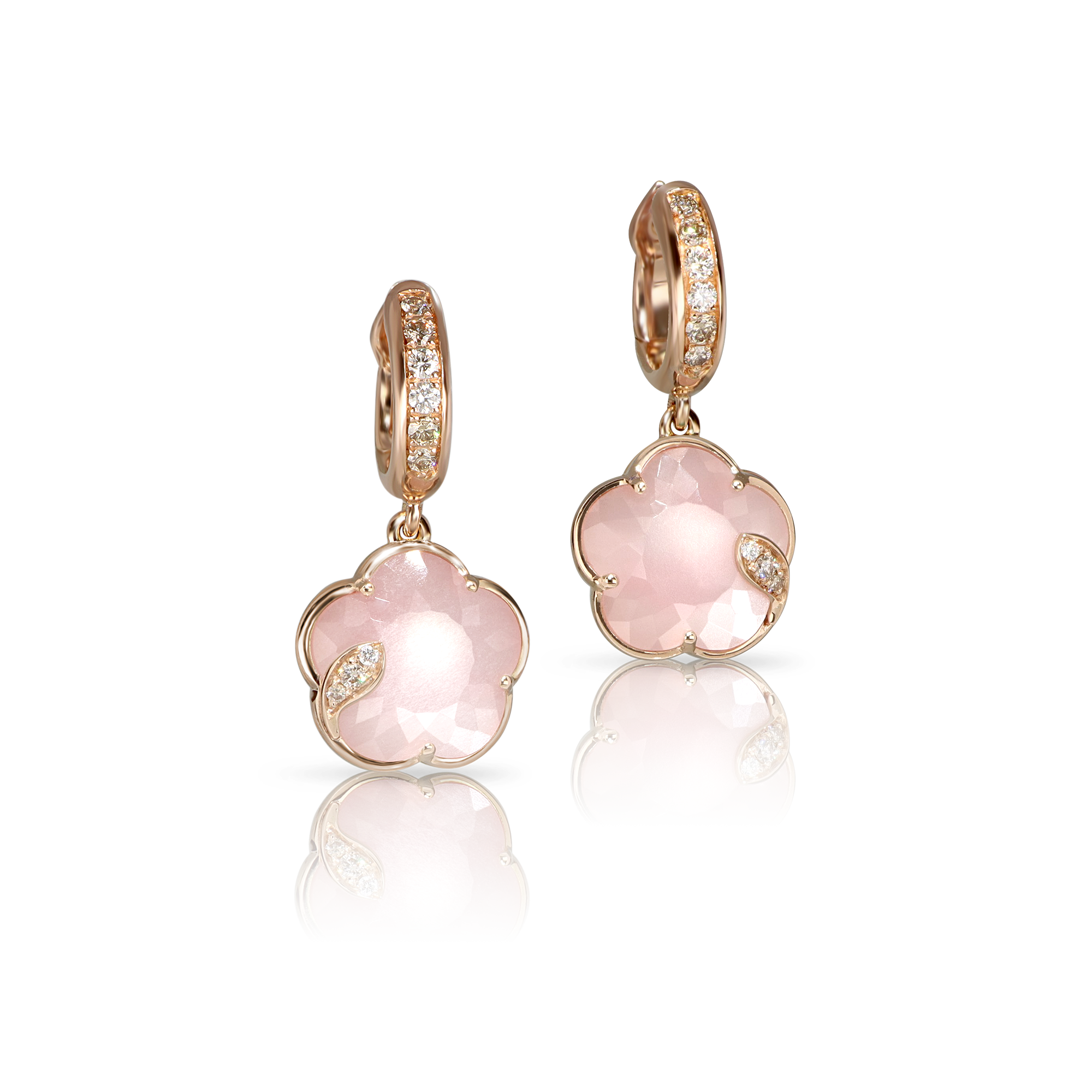 Orecchini in Oro Rosa 18 Carati con doppietta di Onice e Pietra di Luna Bianca e Diamanti.