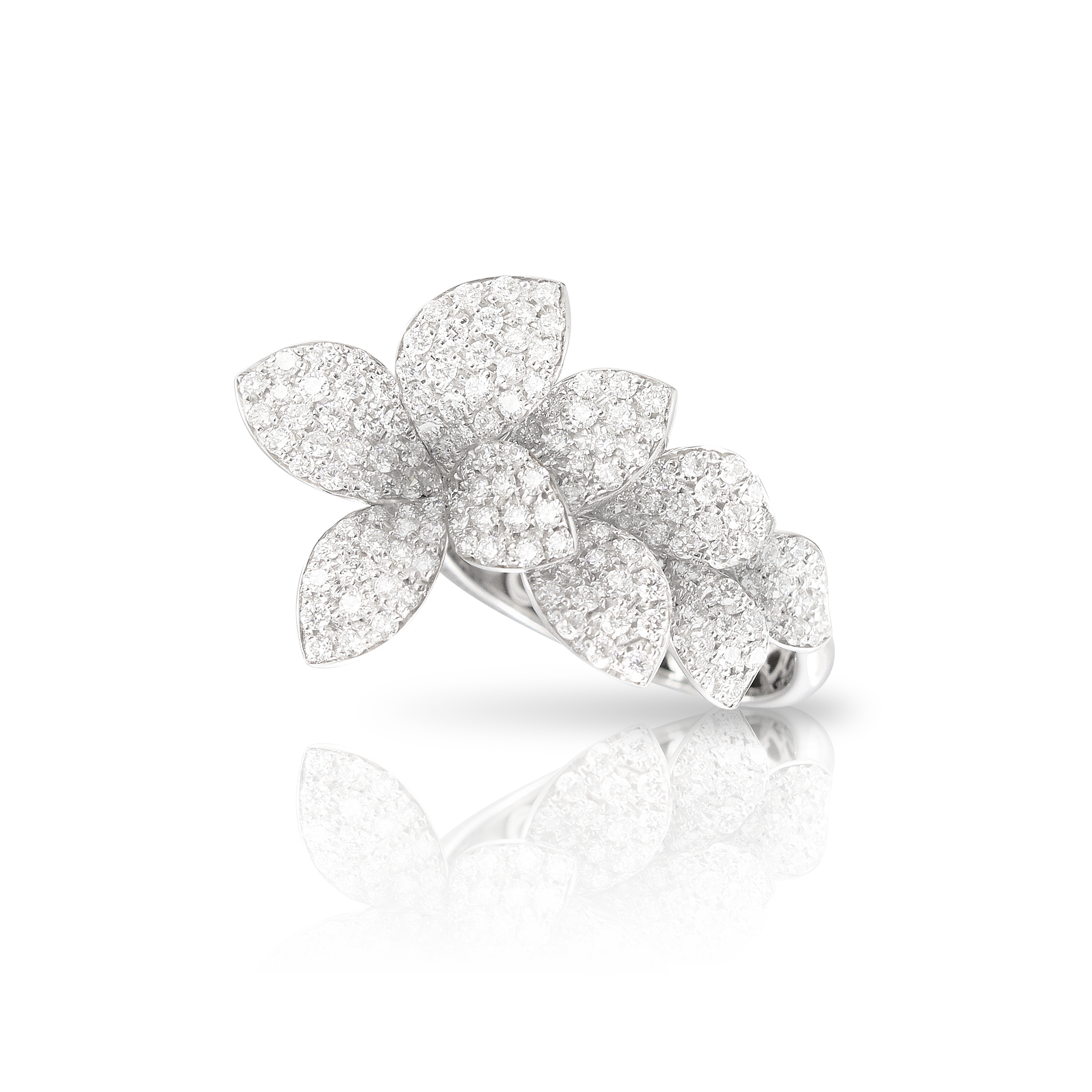La poesia dell'oro rosa accoglie la luce dei diamanti nella danza di fiori mentre un'aura d’oro bianco si sprigiona nella purezza delle foglie. Un profumo di amore e meraviglia unisce fiori e luoghi, nei giardini più segreti del cuore.