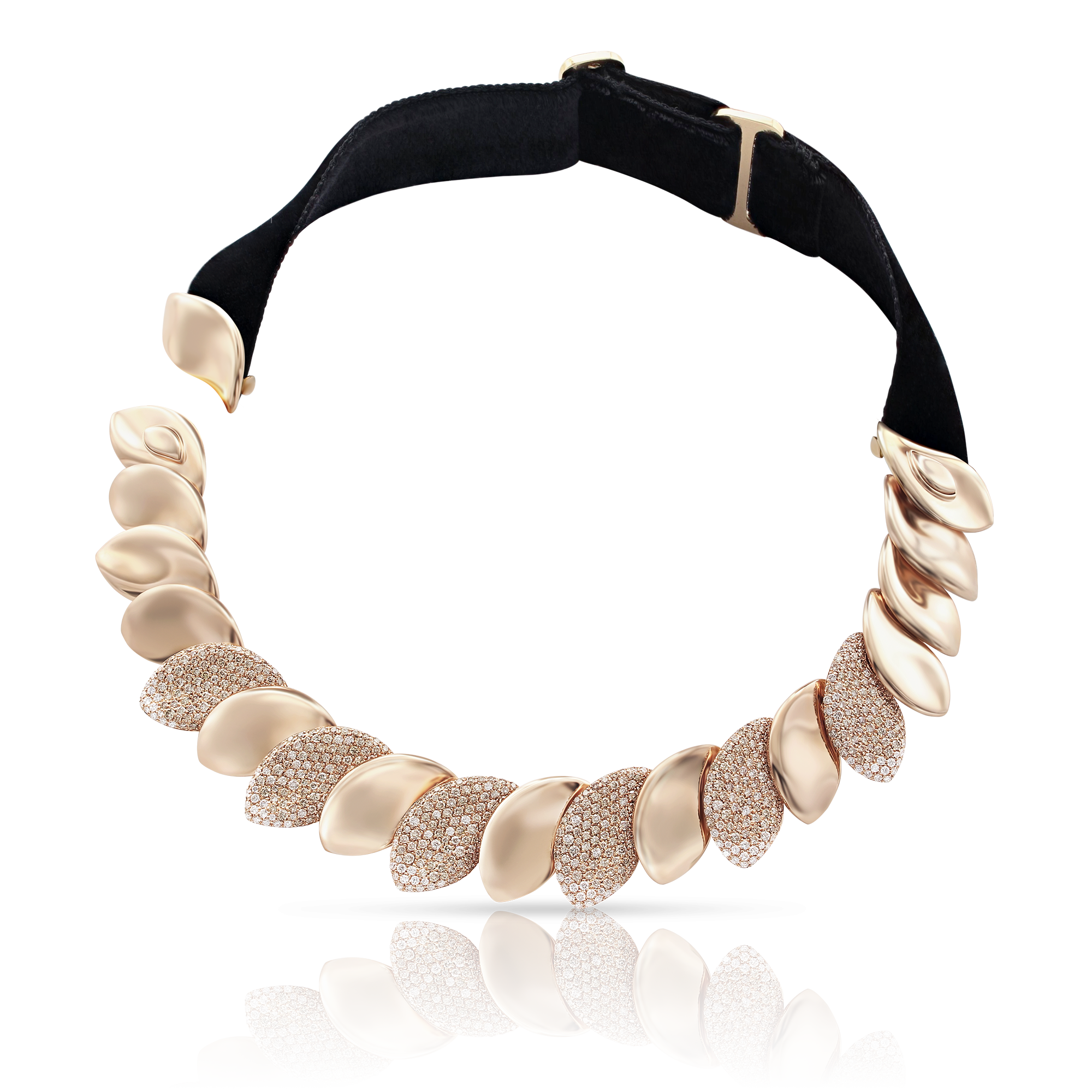 Composizione Choker in Oro Rosa 18 Carati e Velluto con Diamanti Bianchi e Champagne.