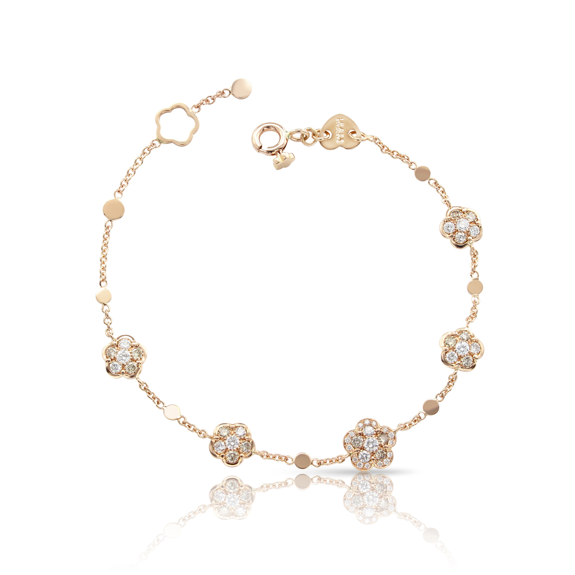 Armband in 18k roségoud met witte en champagne diamanten.
